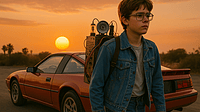 It all started with a single image. A simple AI prompt (2025/8/5) English translation: "Can you generate an image that evokes the world of the 1980s? With a sports car, a sunset, and a young man carry...